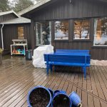 Sommerhytta 2025: Gult lag i lysegul hytte. Fargen som er brukt utendørs er DRYGOLIN Power Clean 12136 Gentle Yellow. Kjæresteparet…