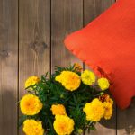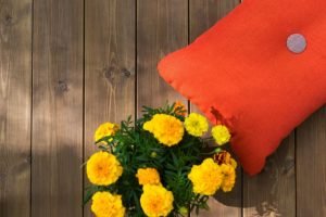 Demidekk Terass Röd Kudde Gul Blomma