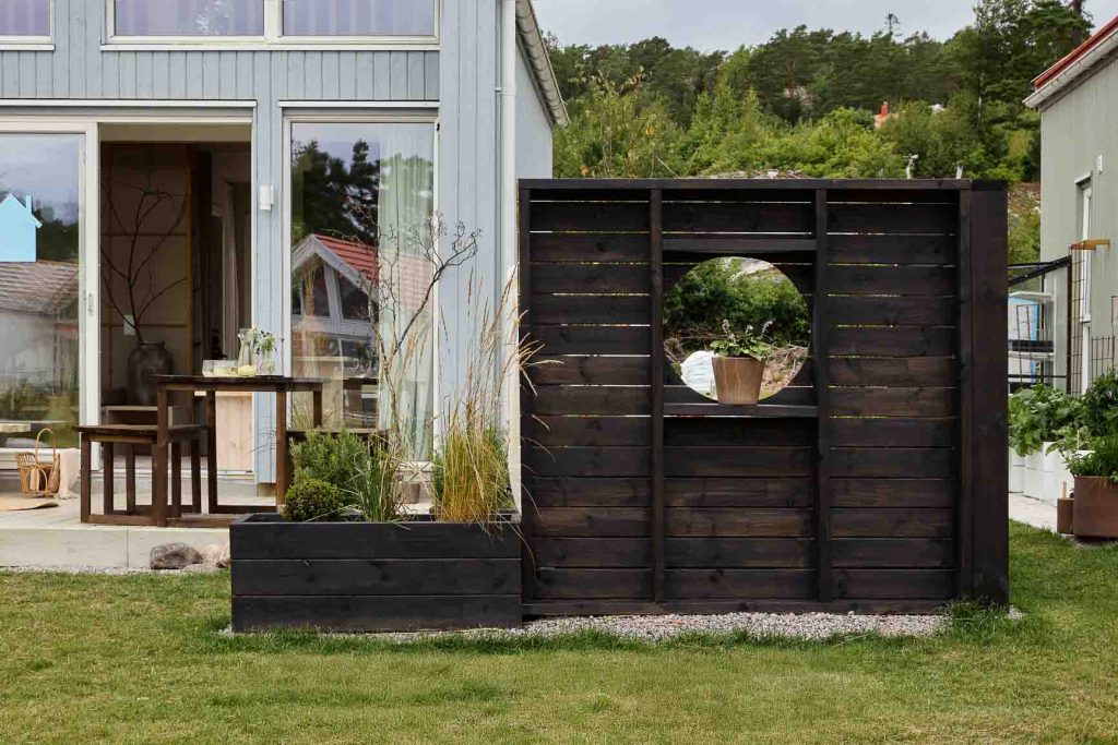 En tøff levegg gir både litt mer privatliv og avgrensning av uterommet – og bak leveggen har jentene laget et privat spa!