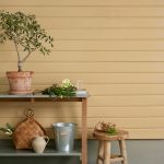 Sommerhytta 2025: Gult lag i lysegul hytte. Fargen som er brukt utendørs er DRYGOLIN Power Clean 12136 Gentle Yellow. Kjæresteparet…